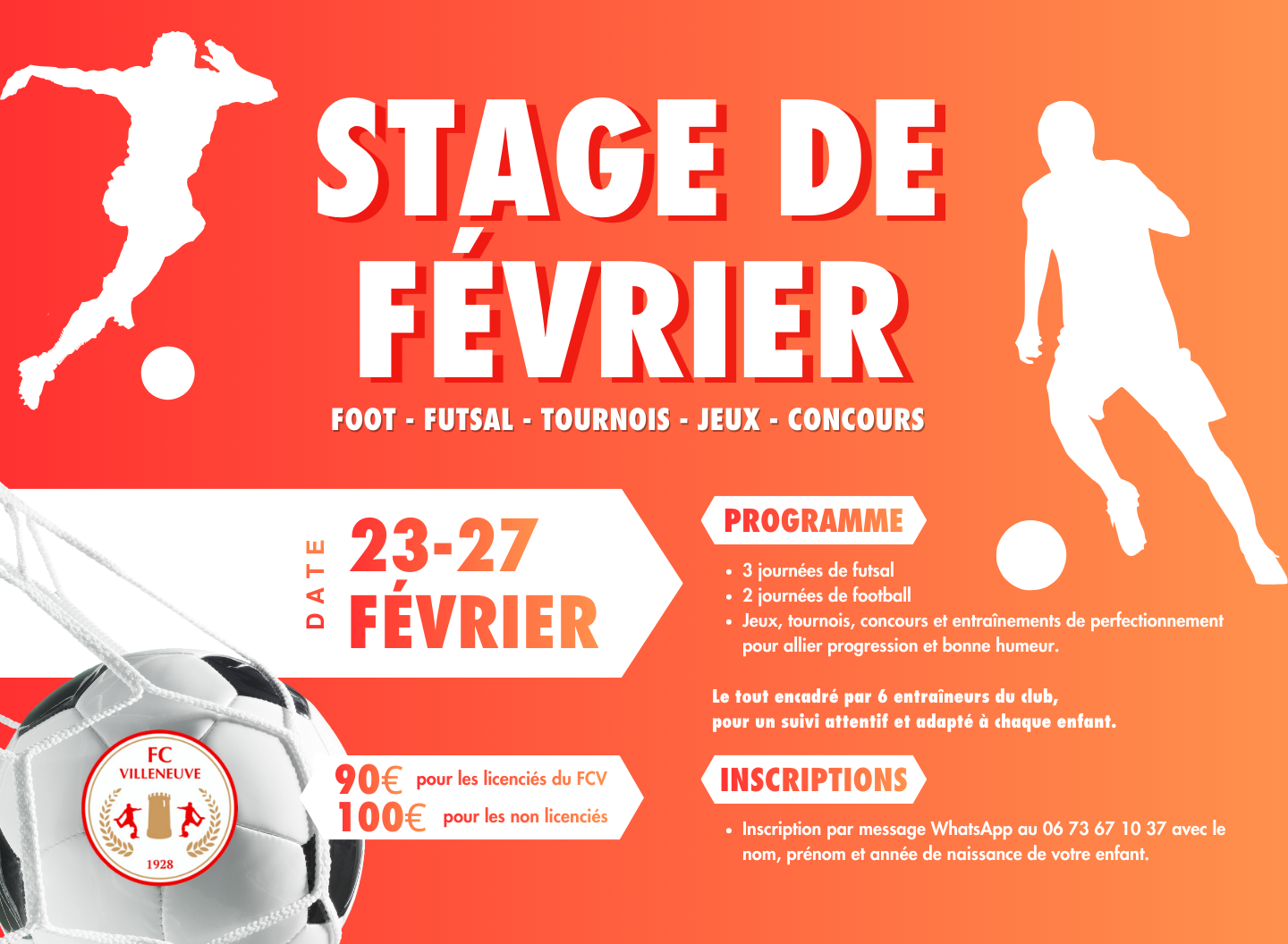 Les inscriptions pour le stage des vacances d’hiver sont OUVERTES ❄️⚽